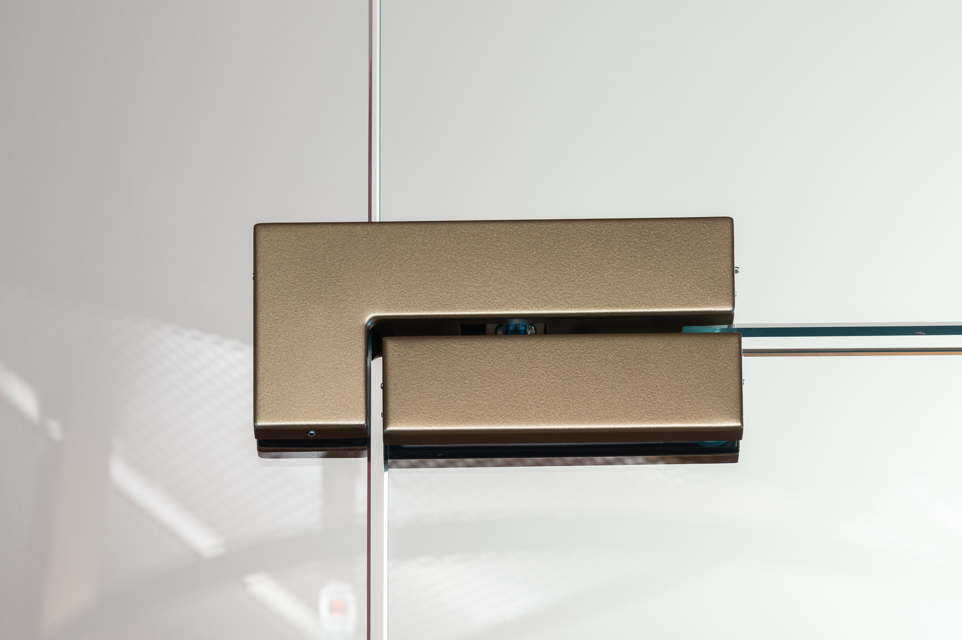 Для прохода между помещениями, в которых смонтированы стационарные перегородки, в них установлены стеклянные двери NAYADA-Crystal из 10 мм закаленного стекла.