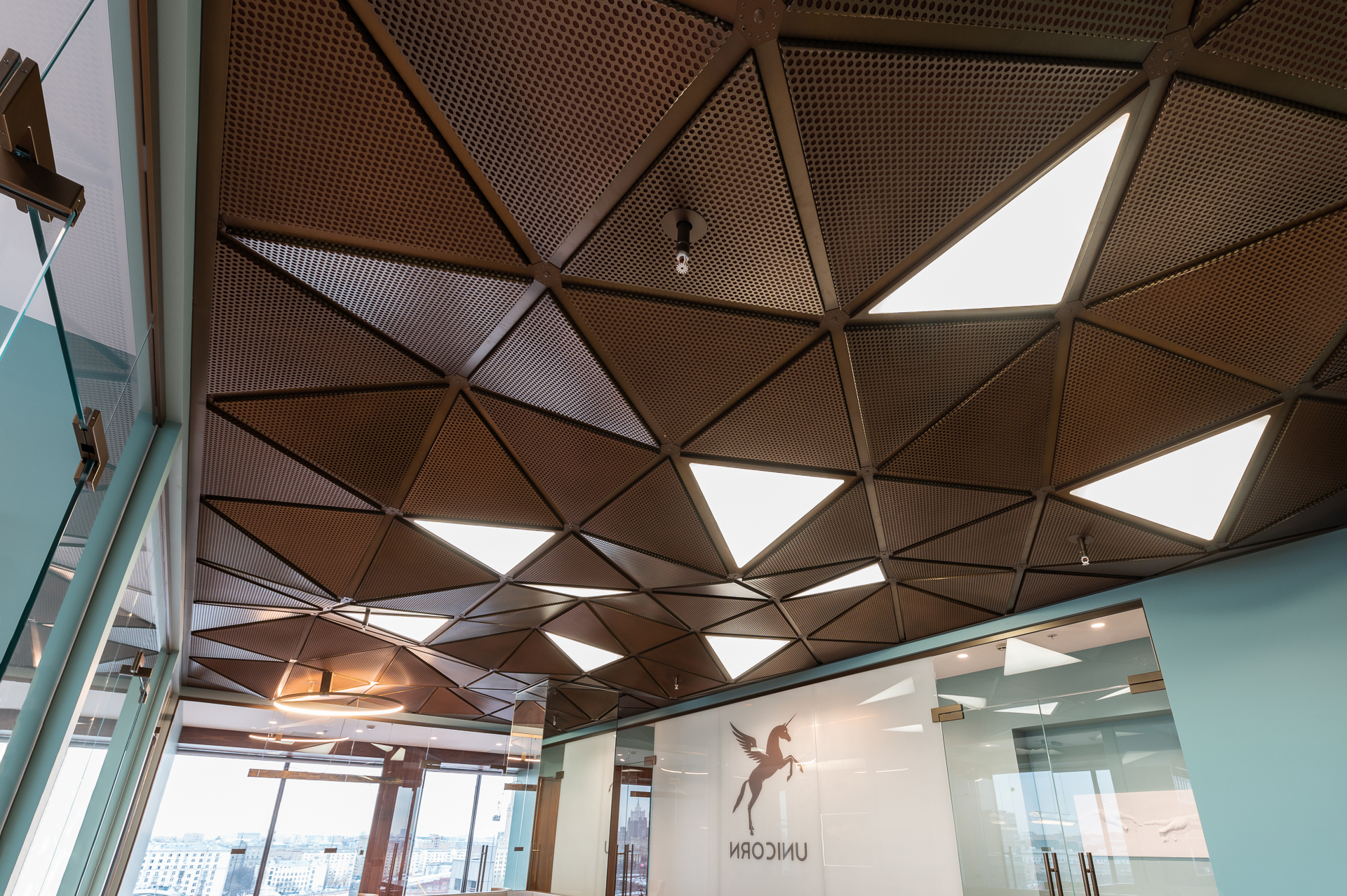 Проект компании Nayada по монтажу систем офисных перегородок (цельностеклянные, мобильные), дверей (стеклянные, скрытые), комплектов проектной мебели (рабочие столы разных размеров и офисные тумбы) и акустических потолков в московском офисе международной инвестиционной компании «Юникорн Капитал Эдвайзерс».